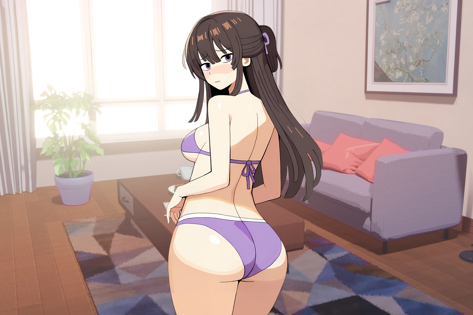 3) Her body. Judging by her gain, I would suspect she is an hourglass that is bottom heavy (a cool combo BTW). The problem is that based on her gain and her weight increase, it makes much more sense to have it where she was exercising and eating at the same time. That way it will still work out and she will get the toned body + softness from the fat (basically the current art you have works with this aspect)