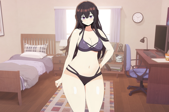 it would also be cool for you to do multiple types of gains, one where she eats and works out balanced (so some softness and some muscle very close to what you have right now, even the current art works), one where she goes protein shakes and works out, and a final one where she just eats so she looks like a somewhat reasonable pile of fat.